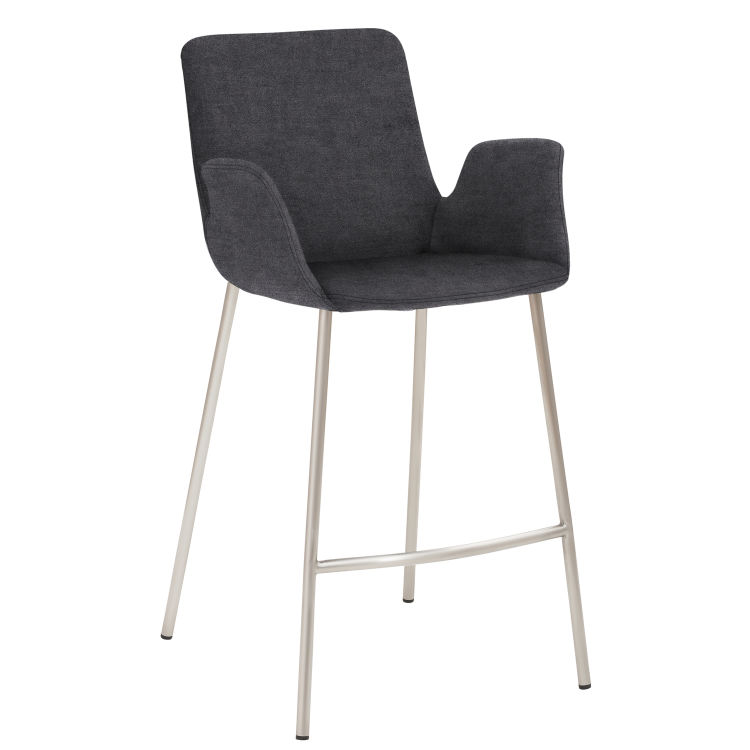 4-Fuß-Gestell Edelstahl gebürstet, Sitz mit integrierten Armlehnen, Vollpolsterung, Sitzhöhe 65 cm. Bezogen mit weichem und atmungsaktivem Mikrofaser-Stoff mit samtiger Haptik, der sich aufgrund seiner Kratzfestigkeit ideal auch für Haustierbesitzer eignet. 100 % Polyester. Umweltfreundlich: OEKO-TEX® Standard 100, Scheuertouren nach Martindale: ca. 90.000, Lichtechtheit: 5, Reibechtheit trocken und nass: 4–5, Pilling: 4-5, Kratzfestigkeitstest (gem. snagging BS 8479:2008) mit Bestnote bestanden.