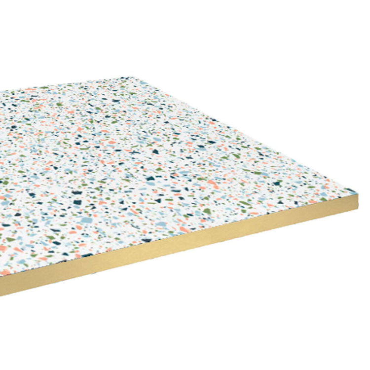 Tischplatte rechteckig, Terrazzodekor, Kanten messingfarben