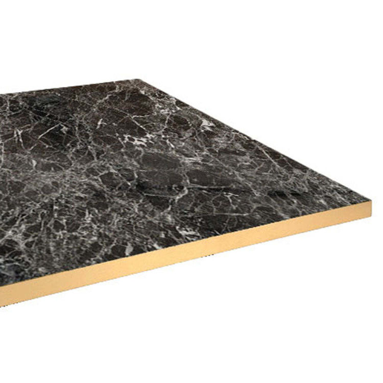 Tischplatte rechteckig, dunkles Marmor-Dekor, Kanten messingfarben